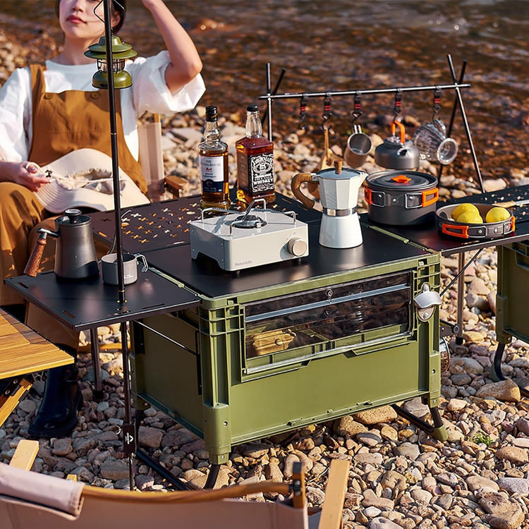 Pour les passionnés de cuisine en extérieur, nos réchauds CampGasStove™ sont conçus pour s'utiliser en toute sécurité sur nos tables pliantes, vous permettant de préparer de délicieux repas où que vous soyez.