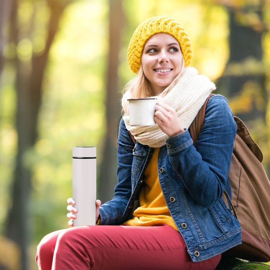 Notre gourde isotherme combine design élégant et technologie de pointe avec son couvercle digital affichant en temps réel la température de votre boisson. Plus besoin de deviner si votre thé est encore chaud ou si votre eau fraßche est devenue tiÚde ! La double paroi isolante maintient vos boissons chaudes pendant 12 heures et froides jusqu'à 24 heures, quelle que soit la température extérieure. Un véritable atout pour votre confort quotidien, n'est-ce pas ?